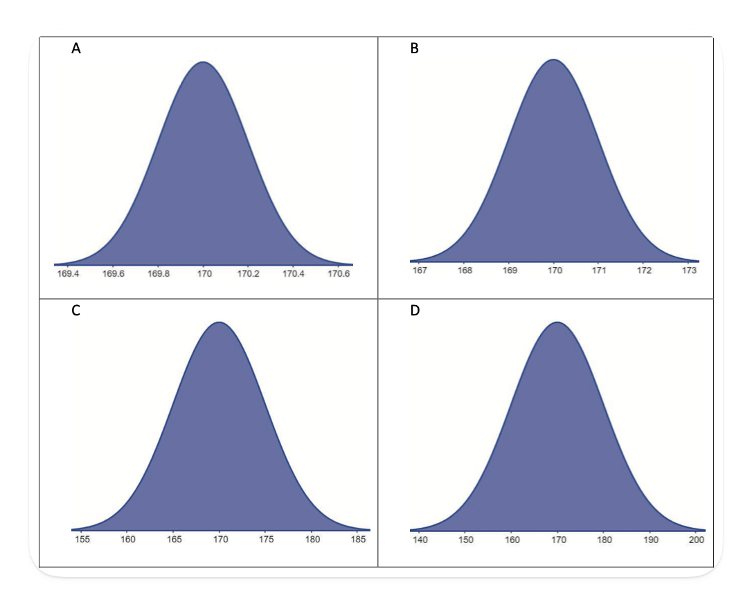 Vi trekker ut 25 tilfeldige elever fra skolen, måler hvor høye elevene er, og regner ut gjennomsnittshøyden.